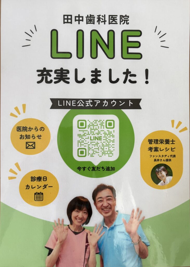 また、2月より田中歯科医院の公式LINEの内容を充実しております。今までの診療日カレンダー、スマイル通心のコラム記事に加えて、管理栄養士でファンスタディ代表の長井さん監修のレシピを月1回、第3月曜日に配信しております。季節にあった、歯や歯肉に良い食事のレシピを投稿する予定です。一人でも多くの方にLINE友だち登録してもらいたいと思っています。